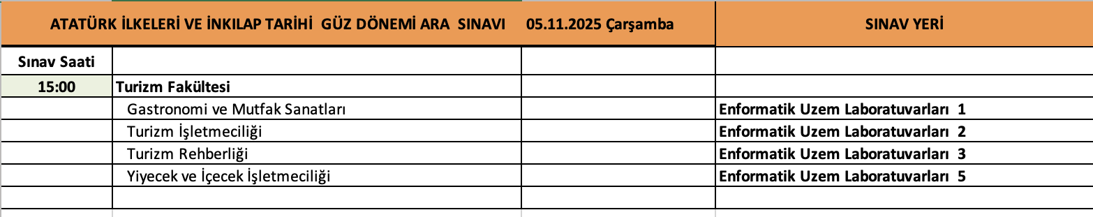 Atatürk İlkeleri ve İnkılap Tarihi Dersi ara sınavı 5 Kasım 2025 tarihinde saat